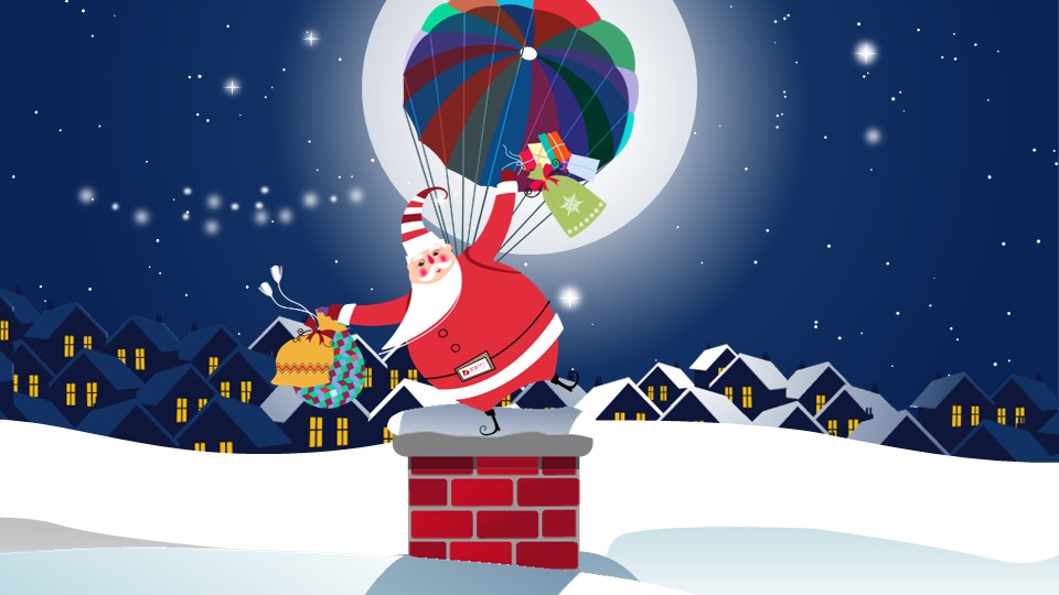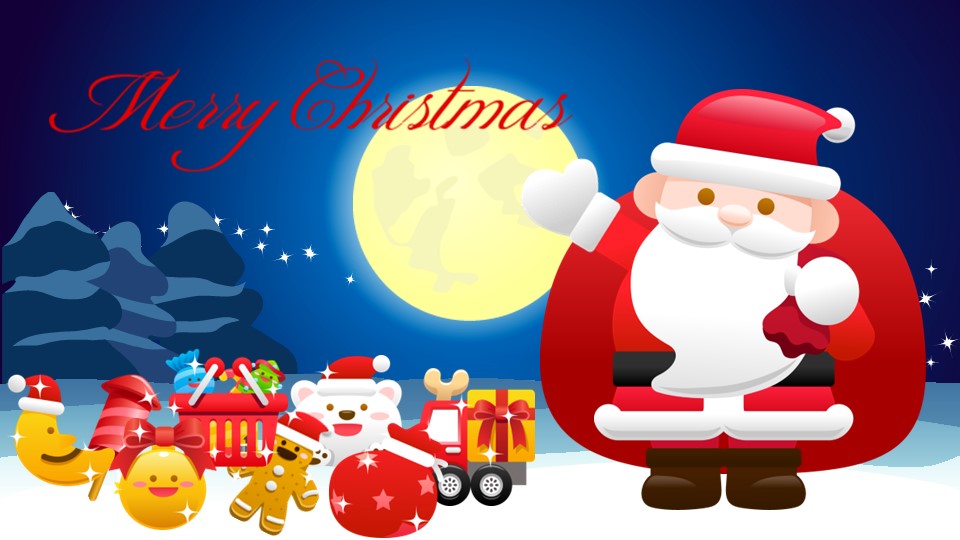 更新 《商务.圣诞节动态贺卡圣诞老人送礼物PPT模板》