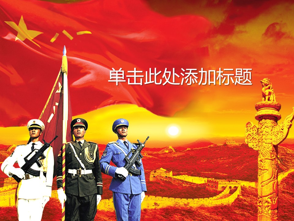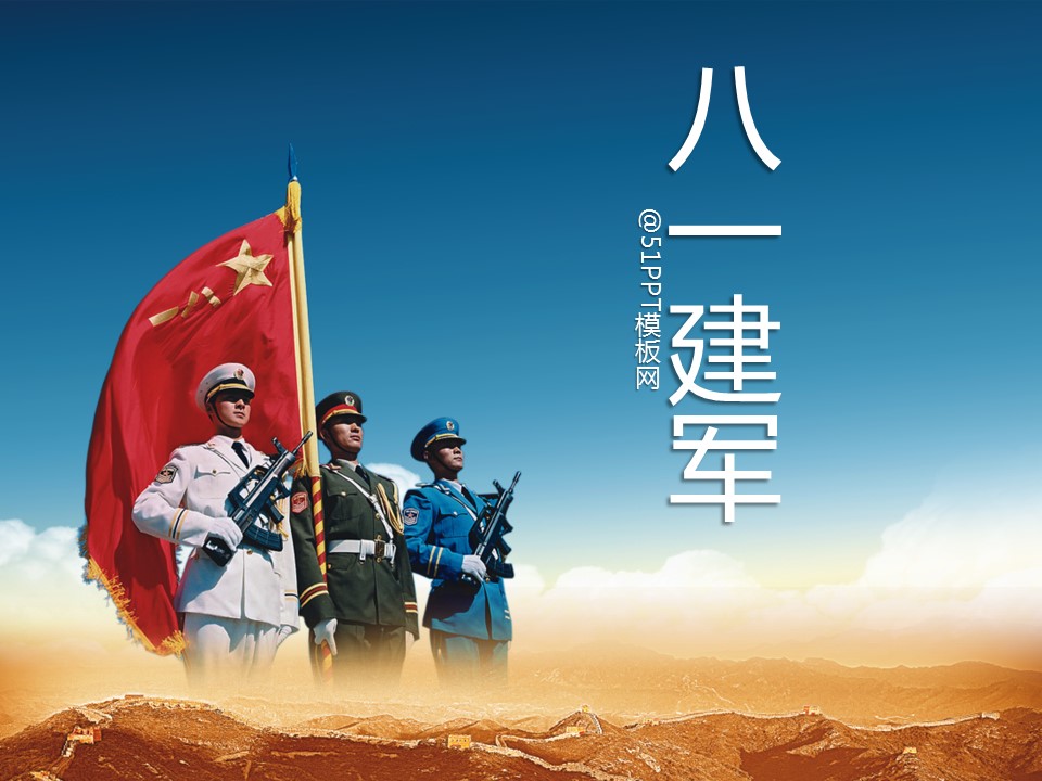 更新 《商务.建军节军旗下的三军仪仗队PPT模板》