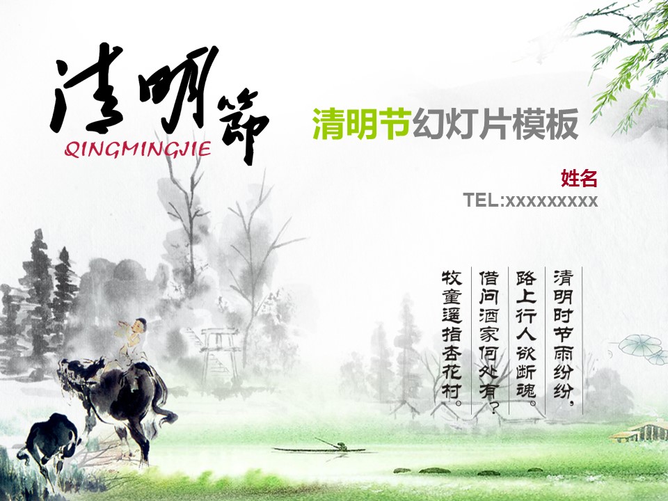 更新 《商务.清明节水墨风景画清明幻灯片模板》